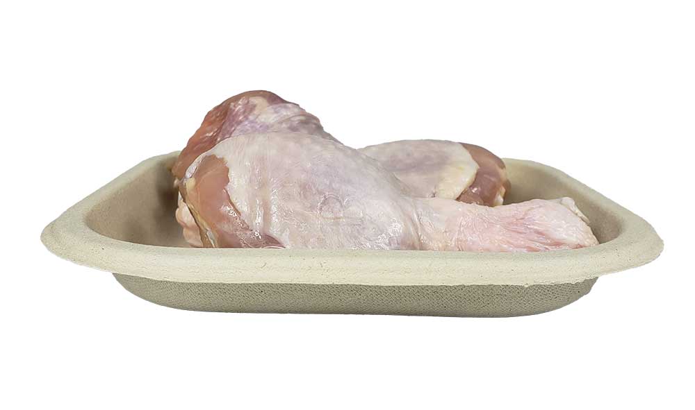 Moulded pulp, also names Molded plup or Moulded Fibre, is a packaging material, typically made from 100% recycled corrugated fibreboard and newspaper. It is used for protective packaging or for food service trays and beverage carriers. Other typical uses are end caps, trays and clamshell containers.